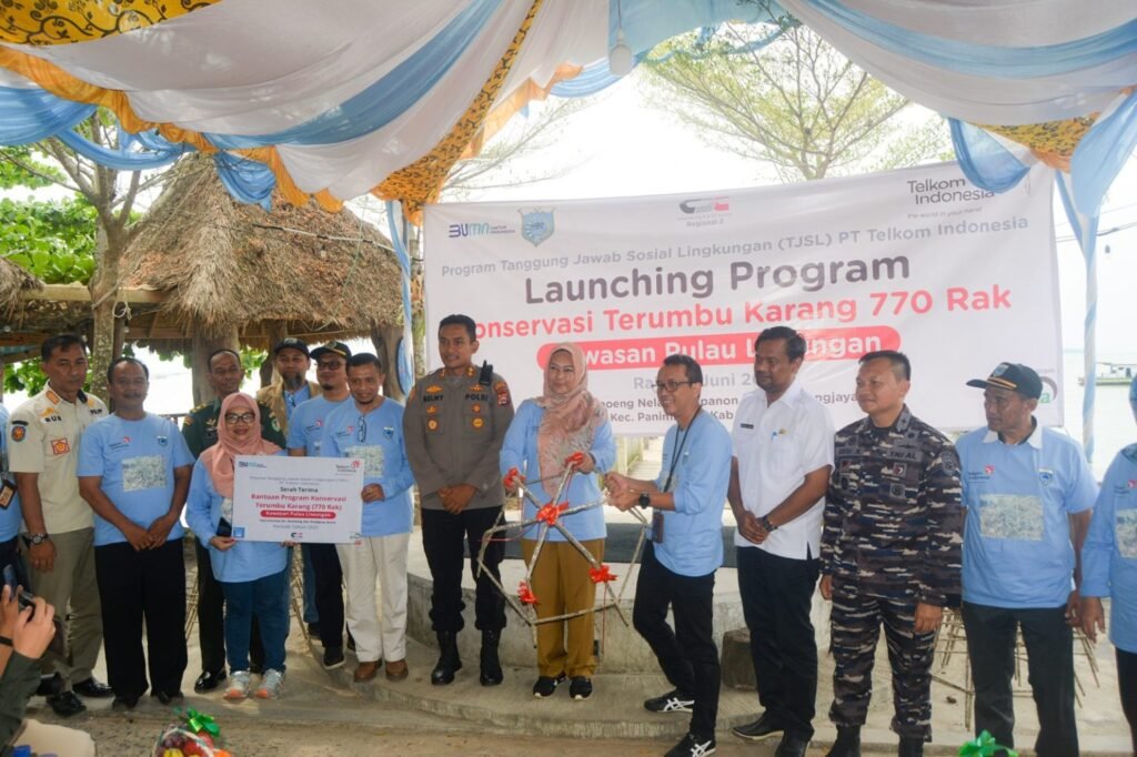 PANDEGLANG.- PT. Telkom Indonesia bersama Forum Pelestari Terumbu Karang (F-PTK) Banten, Rabu (07/06/2023) menandatangani Pakta Integritas guna mendukung pelaksanaan Program Konservasi Terumbu Karang Tahap III di Pulau Liwungan, Kecamatan Panimbang, Kabupaten Pandeglang.