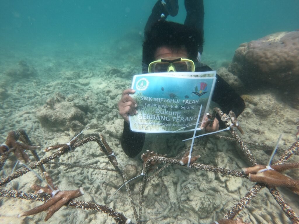 Dijelaskan, pada periode 2024-2029, F-PTK Banten tengah meluncurkan Program Gerakan Membangun Terumbu Karang (Gerbang Terang) yang didalamnya ada kegiatan Coral Reef goes to School (Terumbu Karang masuk ke Sekolah). “Selain melaksanakan kegiatan transplantasi, kami juga menyosialisasikan terumbu karang ke sekolah-sekolah dengan sasaran para siswa, agar kelak mereka menjadi pelopor pelestari terumbu karang,” ungkapnya.